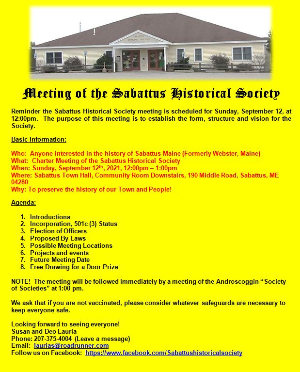first meeting of the Sabattus Historical Society – Sabattus Town Hall